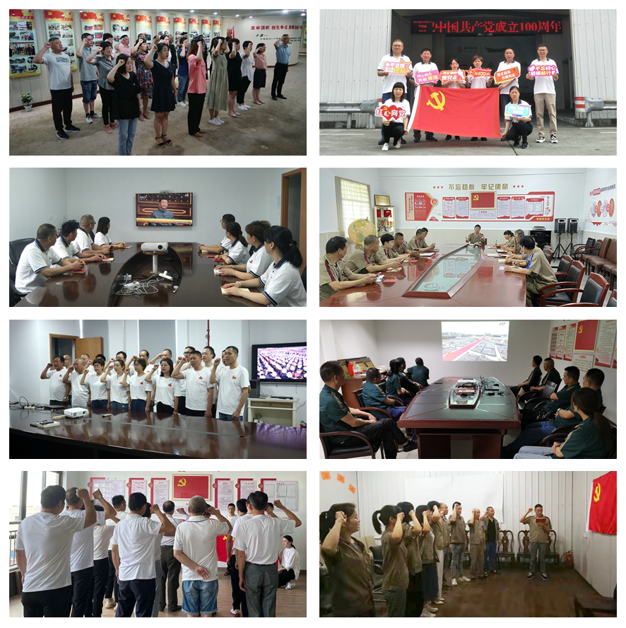 7月1日,是偉大的中國共產黨成立100周年,舉國上下普天同慶,卡森集團也不例外。當天一大早,公司黨委全體黨員滿懷激情,在各支部書記的帶領下,開展重溫誓詞、觀看《慶祝中國共產黨成立100周年大會》直播、高唱《中華人民共和國國歌》、《沒有共產黨就沒有新中國》等,慶祝黨的100周歲生日。