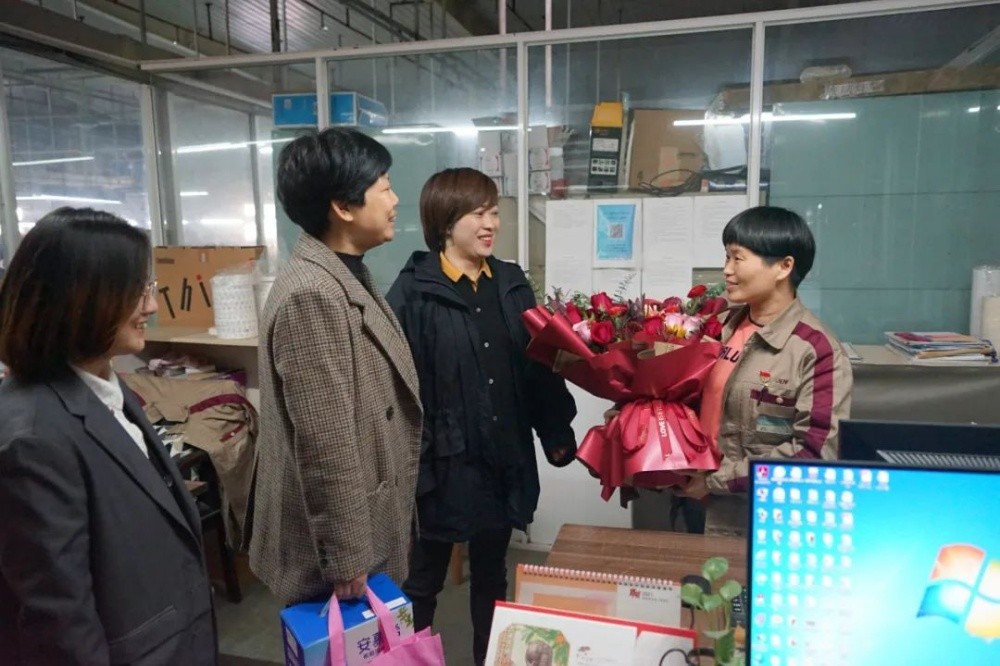 11月11日,斜橋鎮婦聯主席蔡丹薇等在集團婦聯主席顧麗萍的陪同下到斜橋廠區慰問“全國三八紅旗手”、“浙江省勞模”李明華,給她送去了鮮花和問候。