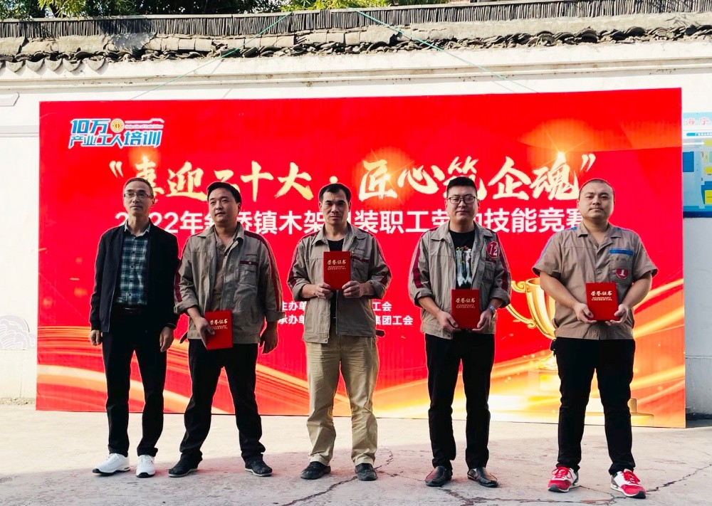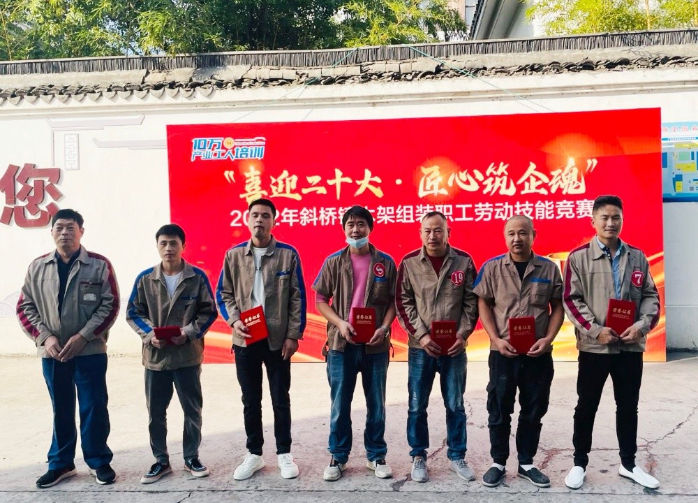 為提升職工勞動技能水平,形成創先爭優、比學趕超的競爭氛圍,一場以“喜迎二十大 匠心筑企魂”為主題的2022年斜橋鎮木架組裝勞動技能競賽在恒森公司組裝車間拉開戰幕,來自組裝一車間、二車間和打樣車間的26名技能型員工報名參賽。