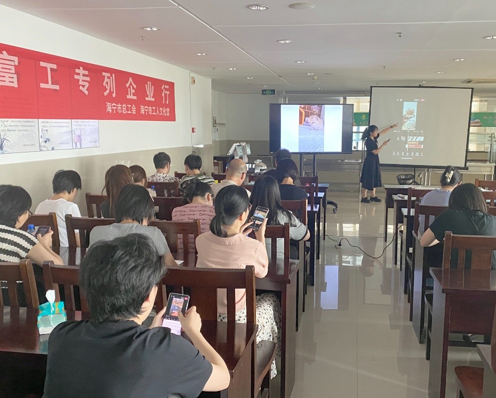 短視頻拍攝制作已成為當(dāng)前主流趨勢(shì),日常工作和生活都離不開(kāi)它。為了增強(qiáng)員工綜合技能,激發(fā)和培養(yǎng)員工興趣喜好,豐富員工文化生活,更好地適應(yīng)新時(shí)期社會(huì)發(fā)展需求,7月27日下午,我集團(tuán)舉辦手機(jī)短視頻制作培訓(xùn)班,邀請(qǐng)海寧市工人文化宮沈愷老師現(xiàn)場(chǎng)授課,20多位視頻制作愛(ài)好者參加。