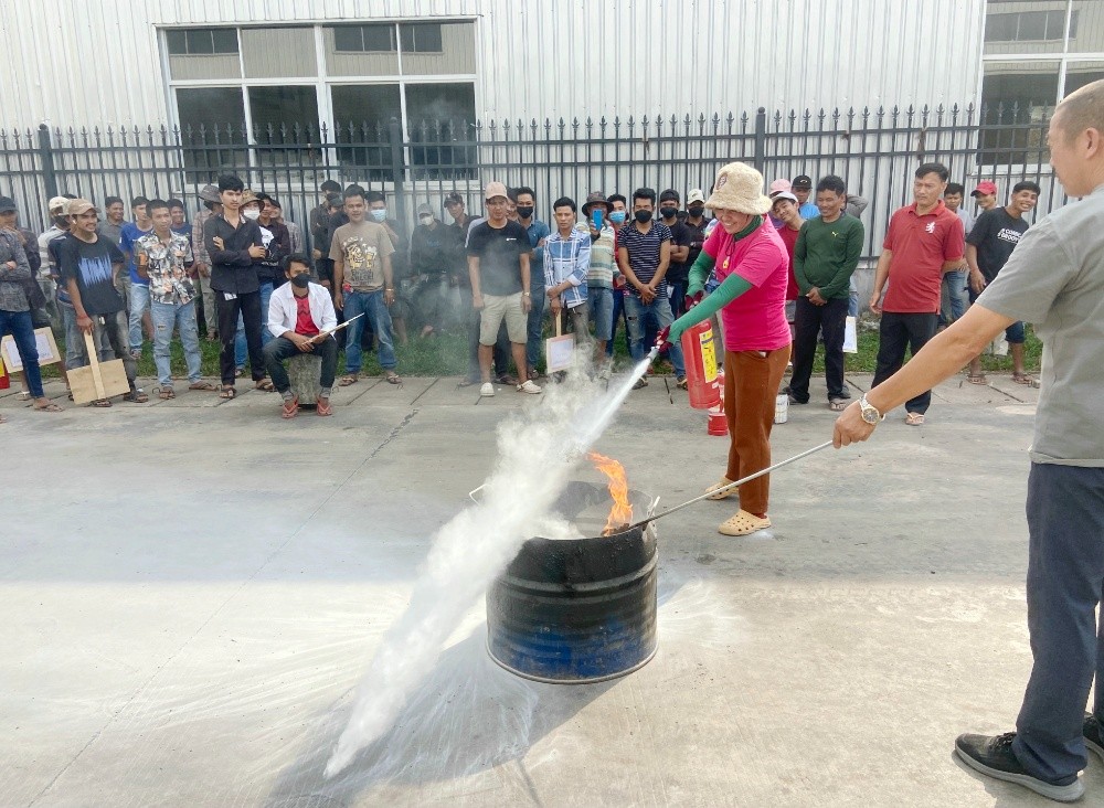 恒森公司柬埔寨廠區(qū)現(xiàn)有員工450人,這次培訓(xùn)分上、下午兩場進行,著重宣傳和強調(diào)消防安全和道路交通安全的重要性和必要性,并就消防器材使用進行了現(xiàn)場講解與演練。