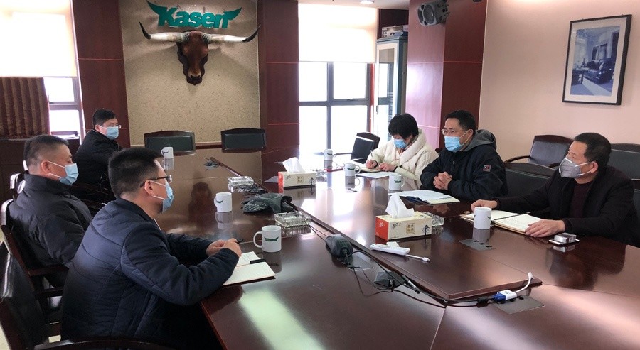 面對當前疫情非常時期,2月10日下午,海寧市委書記朱建軍、市委辦主任陳中權等一行三人來到卡森集團總部調研指導疫情防控工作及企業復工準備情況。集團副總裁張明發、周小紅、王柏良作了相關情況的匯報。