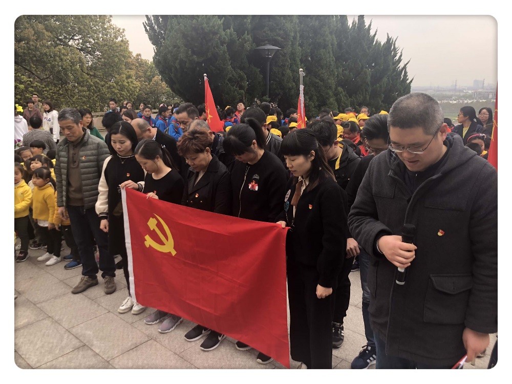 接著,黨員們拾級而上,一氣呵成來到了高高在上的紀(jì)念碑前,看到碑上刻著八個大字:革命烈士永垂不朽。全體黨員在烈士紀(jì)念碑前默哀1分鐘, 由李江東帶領(lǐng)全體人員面對黨旗鄭重重溫了入黨誓詞,一字一句鏗鏘有力,充分表達了黨員們團結(jié)一致,恪守黨員承諾、彰顯爭創(chuàng)模范黨員的決心。