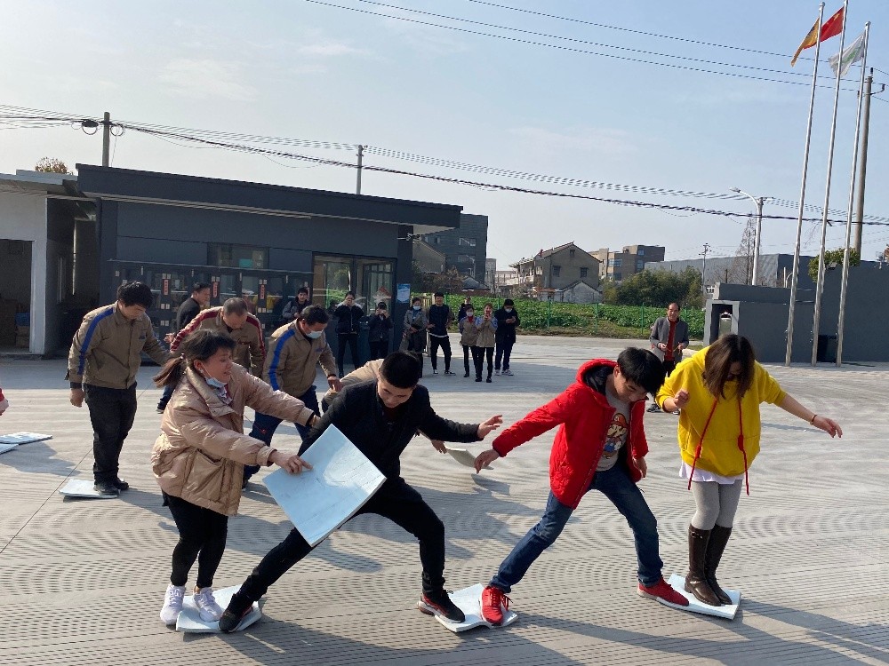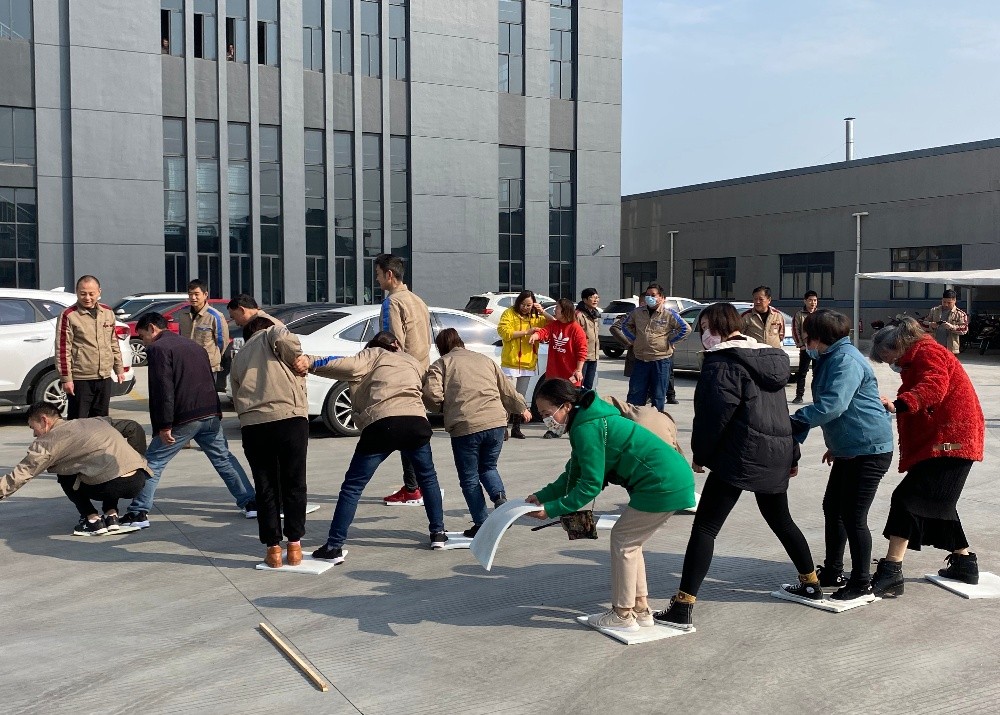 本次活動(dòng)共有63名留守外地員工參加。活動(dòng)開始前,由裁判員介紹比賽規(guī)則為每4人一組進(jìn)行趣味活動(dòng),每人四塊海綿,通過(guò)腳踩磚頭,四塊磚頭輪流交換的方法穿過(guò)賽道,腳不能著地,到達(dá)終點(diǎn)線。準(zhǔn)備就序后,裁判一聲令下,比賽正式開始,賽事緊張而激烈,員工們個(gè)個(gè)鉚足了勁,使出渾身解數(shù)與之較量。一旁觀戰(zhàn)的員工為之吶喊助威,現(xiàn)場(chǎng)歡笑聲、加油聲此起彼伏,點(diǎn)燃著團(tuán)隊(duì)們的激情。參賽員工有的采用“青蛙式”的蹦跳、有的采用“螃蟹式”的“橫行法”、有的采用“凌波微步式”。外來(lái)員工們雙手靈活地挪動(dòng)磚頭,絲毫不見疲憊緊張的樣子。本次活動(dòng)讓員工們體驗(yàn)了運(yùn)動(dòng)的快樂、競(jìng)爭(zhēng)的樂趣,讓緊張的工作多了一份趣味和童真,同時(shí)也加強(qiáng)了員工的團(tuán)隊(duì)協(xié)作意識(shí),營(yíng)造了輕松愉悅的氛圍,