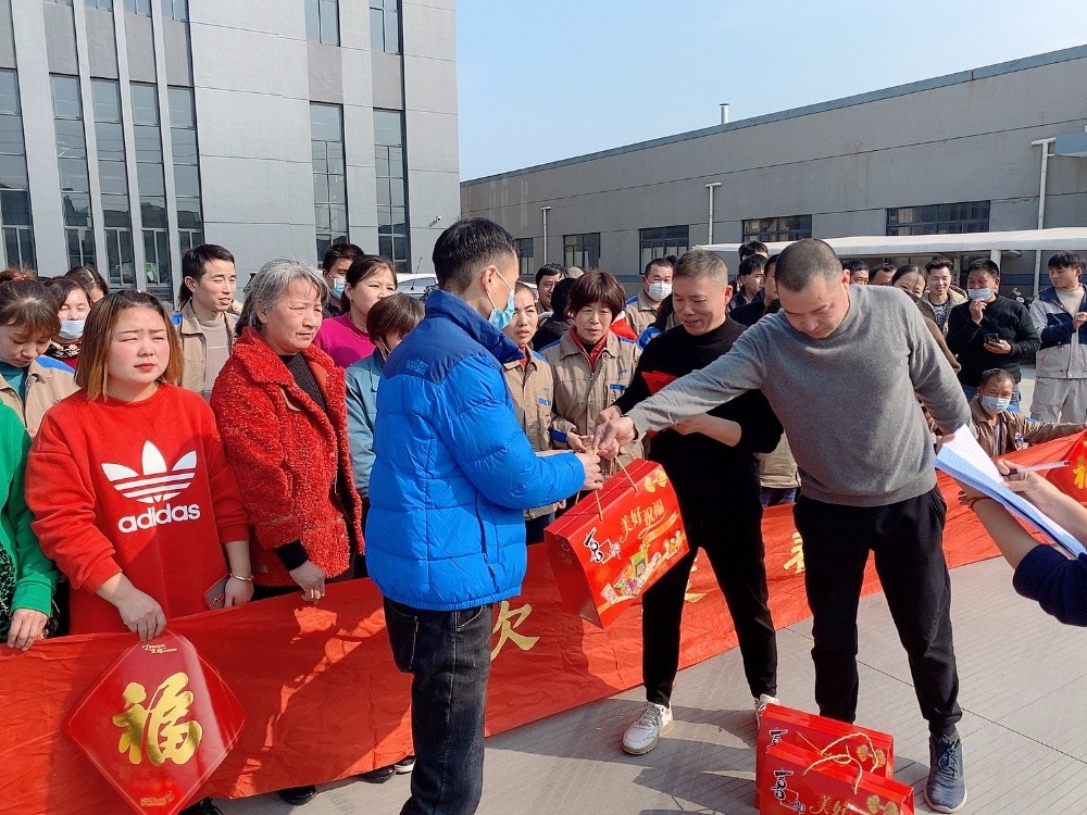 最后,公司領(lǐng)導(dǎo)為留守外地員工每人發(fā)放一份大禮包和一個(gè)紅包,大家拍集體照留念,讓大家感受到漢林大家庭的溫暖、過(guò)年的溫馨。另外,斜橋鎮(zhèn)總工會(huì)聯(lián)合嘉興移動(dòng)推出“陪你在‘嘉’過(guò)年”活動(dòng)為企業(yè)外地留宿員工大禮品派送活動(dòng),以及春節(jié)期間將實(shí)行海寧市內(nèi)公交針對(duì)省外來(lái)員工免費(fèi)乘車措施,也讓員工們真實(shí)感受到政府對(duì)他們的關(guān)心和關(guān)愛。