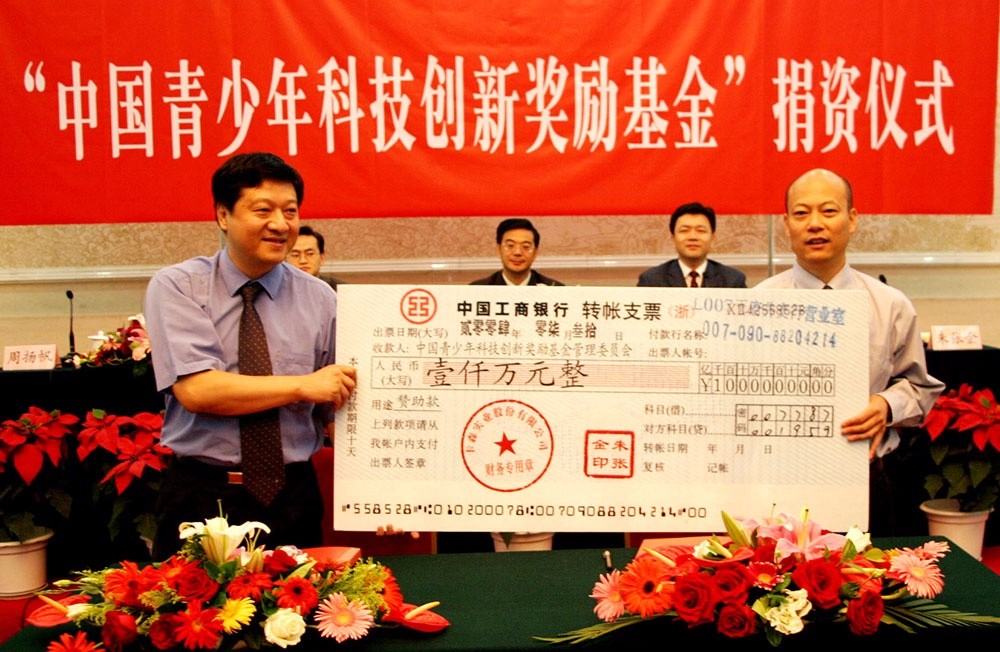 ▲ 2004年,向根據鄧小平同志遺愿設立的“中國青少年科技創新獎勵基金”捐贈1000萬元;