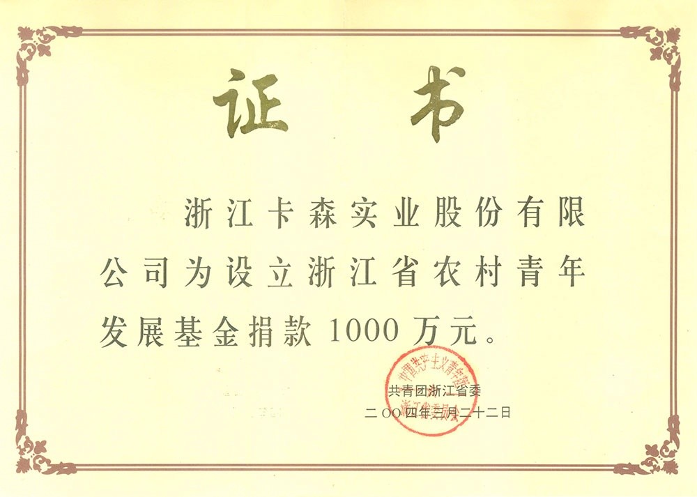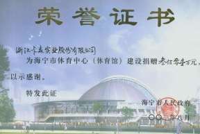 ▲ 2007年,海寧市創建慈善基金,集團設立卡森留本冠名基金1500萬元,至今累計捐贈545萬元,用于助困、助學、助教、助殘;